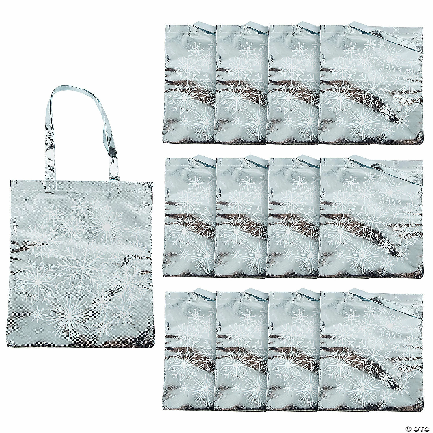 Flash Sale π₯ 15″ x 17″ Large Metallic Snowflake Tote Bags – 12 Pc. π§¨