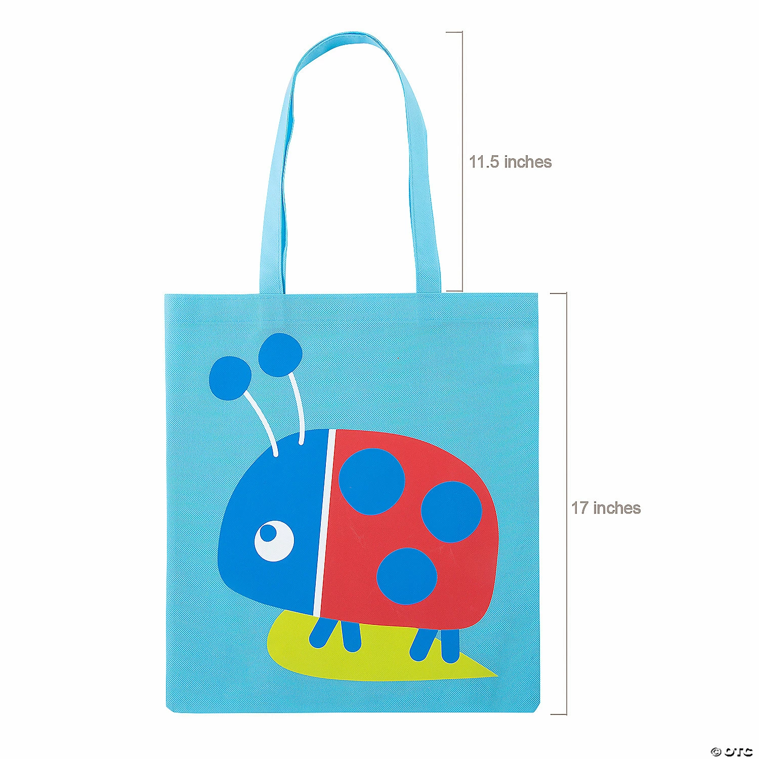 โข Fun Crafts: With some craft tools and imagination, these tote bags could be your next creative project. Perfect as a classroom activity or an at-home craft, these tote bags just needs your personal touch to come to colorful life! โข Eco-Friendly: Ditch the plastic bags and go green with these tote bags! Mother Earth is sure to appreciate the gesture, so go ahead and gift them to your friends and family while youโre at it! โข Travel-Friendly: No matter where your day takes you, these tote bags is sure to be a handy companion! Designed with easy-to-use straps and a spacious interior compartment, these tote bags is ready for on-the-go fun! Product Description:Spring has tote-ally sprung with these kidsโ tote bags! Fill the totes with candy and giveaways to create spring event goody bags, or use them as summer camp prizes or classroom rewards. The tote bag assortment is packed with springtime fun like lady bugs, bees and lightning bugs! Kids can use the large bags to haul all of their favorite things to spring activities! ยฉ OTCSize: 15″ x 17″ with 11 1/2″ handles.Quantity: 12Material: Nonwoven.