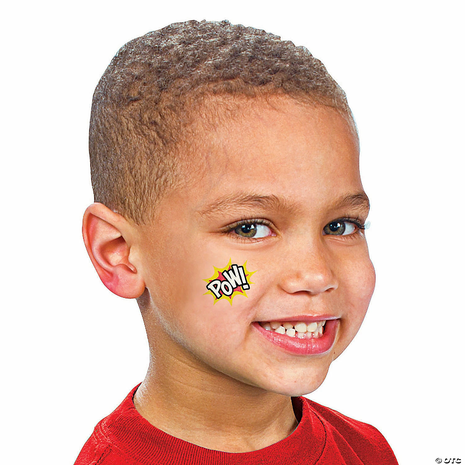 Boom! These awesome superhero temporary tattoos are action-packed and ready to be put in goody bags! Featuring explosive expressions and mighty superheros, party guests will feel like they can take on anything once these are applied. Easy to apply and remove. Paper. (6 dozen per unit) 1 1/2″ Safe and non-toxic. ยฉย OTC