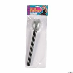Glitter Microphone. Take center stage with this sparkly plastic and foam microphone! Not the real thing, but fun for a sing-a-long or costume accessory! These 10 1/2″ glittery microphones also make awesome rock-and-roll prizes at a school carnival. Every kid loves being a pop star! For novelty use only.
