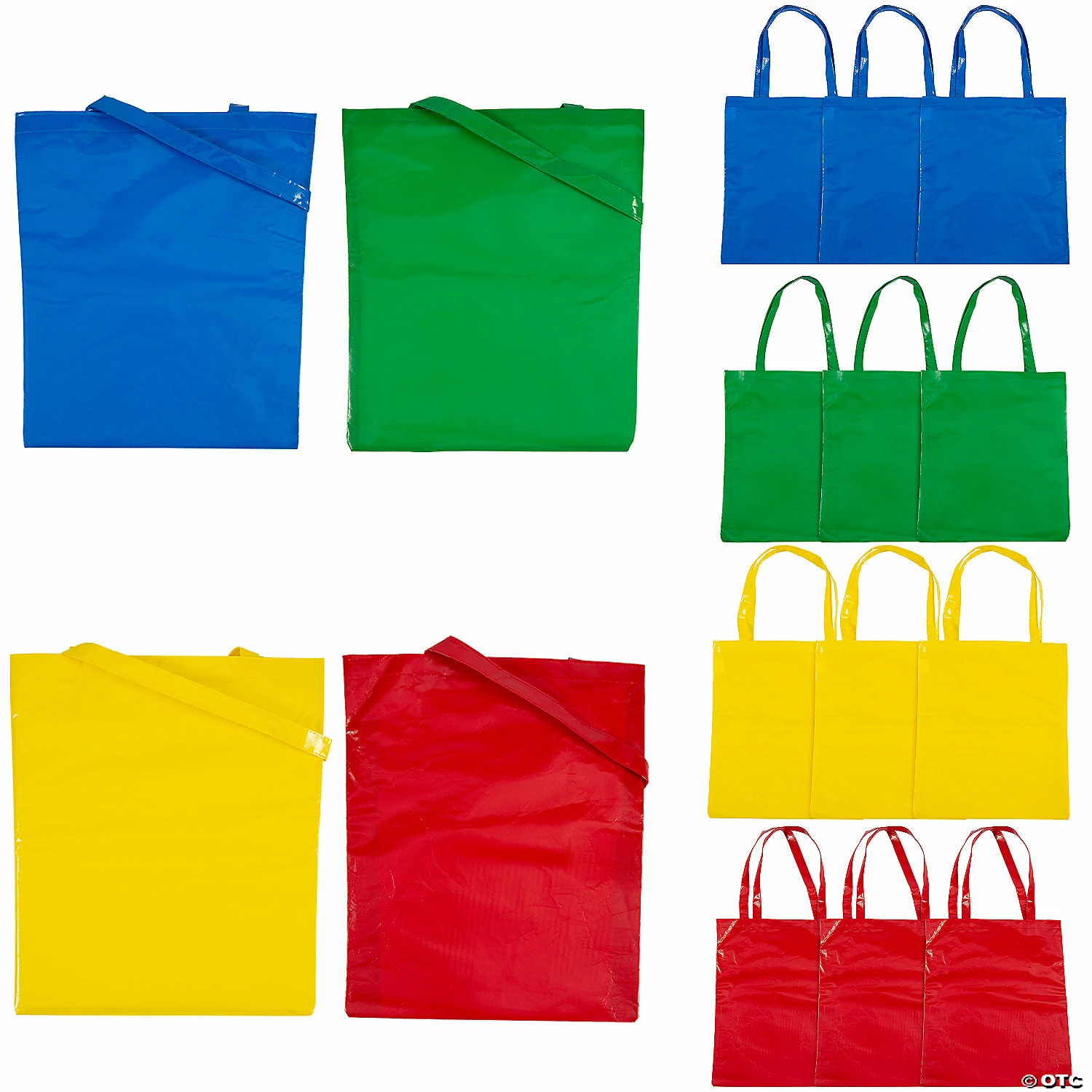 โข Multi-purpose: These bags can carry a wide range of everyday essentials, including books, toys, groceries, snacks, sunglasses, and more! Bring it along with you on special outings to the beach, the farmerโs market, or even the store. Youโll be glad you did! โข Durable Quality: These sturdy tote bags wonโt let you or your accessories down. Plus, you can easily store the reusable bag away until you need it again. โข Eco-Friendly: Ditch the plastic bags and go green with this eco-friendly tote bag! Mother Earth is sure to appreciate the gesture, so go ahead and gift this tote bag to your friends and family while youโre at it! Product Description:These colorful totes are durable and versatile! Hand these out as gift bags at a party or as giveaways at a community event. These reusable bags will be used again and again instead of disposable bags, making these bags an environmentally friendly choice. Great for carrying school supplies, gym clothes or snacks, these colorful tote bags are a useful choice. Size: 15″ x 17″ with 11 1/2″ handles.Quantity: 12Material: Nonwoven polyester.