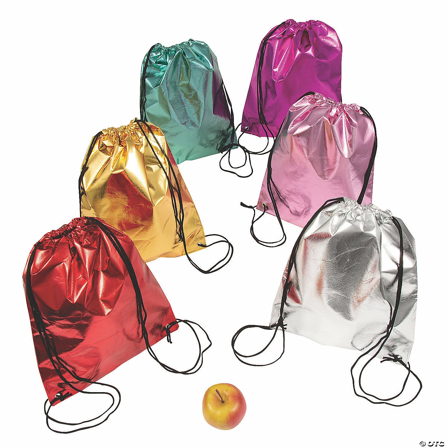 Go glam with roomy iridescent drawstring bags in six jewel tones. These practical gift ideas can carry everything tweens and teens need to get through a day at schoolβ¦ or bachelorette party goers need to get through a night on the town! Theyβre also an eye-catching giveaway to materials at corporate events and trade shows. Nonwoven polypropylene. 12″ x 16″