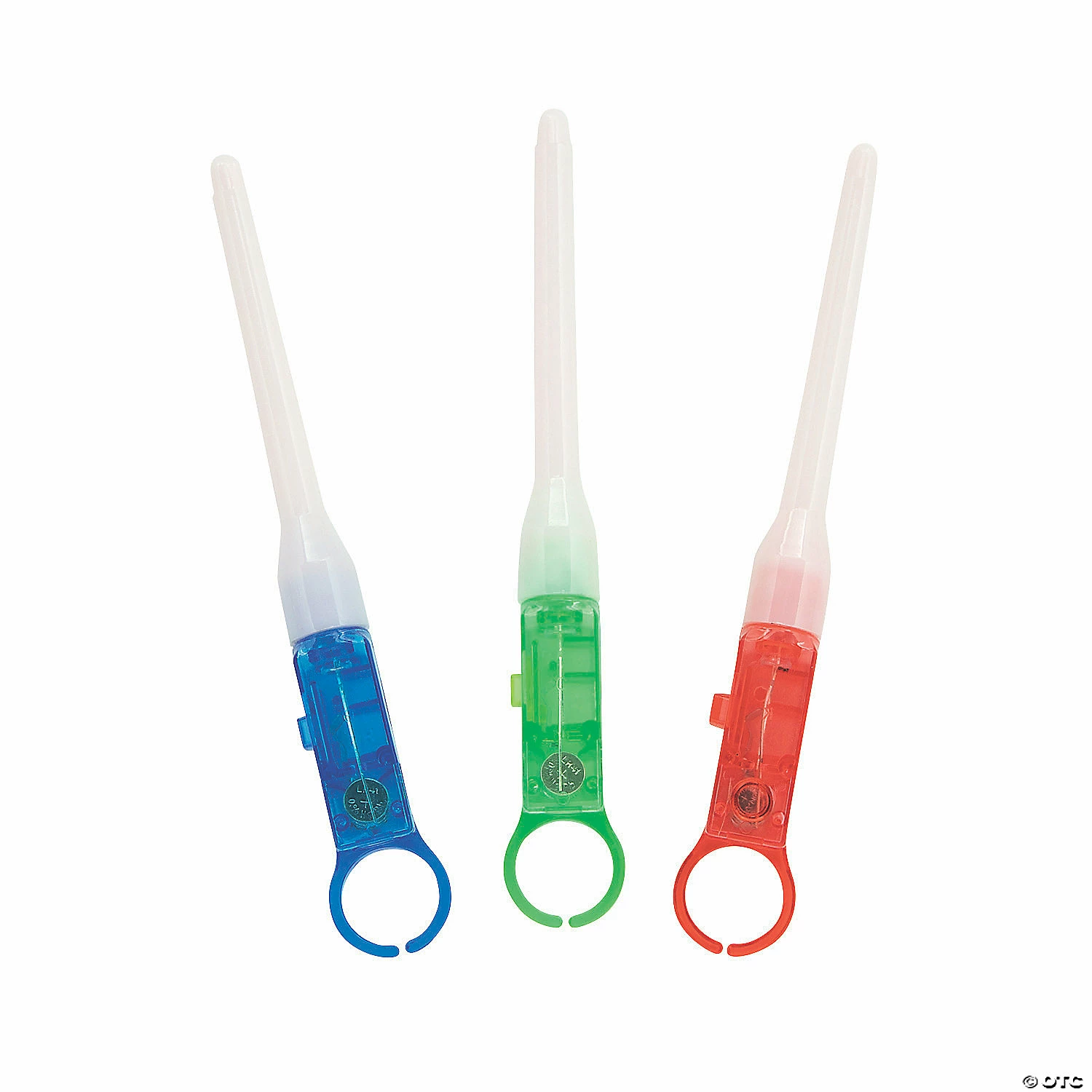 En guarde! These light-up sword rings will delight kids and spark their imagination as they duel invisible foes and more. These rings make great party favors at a pirate-themed birthday party and also work well as classroom rewards or kids’ giveaways at community events. Kids will love these fun and unusual rings! Plastic. 1″ Includes batteries.