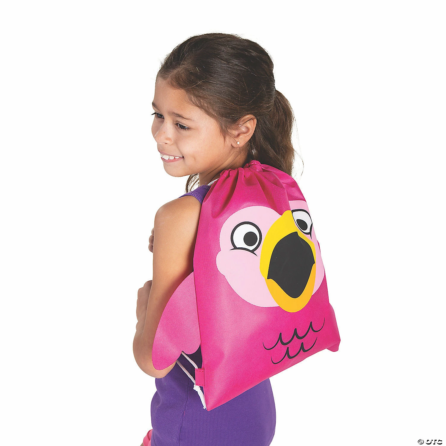 These drawstring bags in four different bright colors are ready to take flight, featuring cheerful topical birds that proudly display their plumage with โfeathersโ on either side. As a classroom giveaway or favor at a party or zoo event, these bags can carry a water bottle, snacks, coloring pages or education sheets for amateur bird watchers. Nonwoven polypropylene. 12″ x 15″ ยฉ OTC