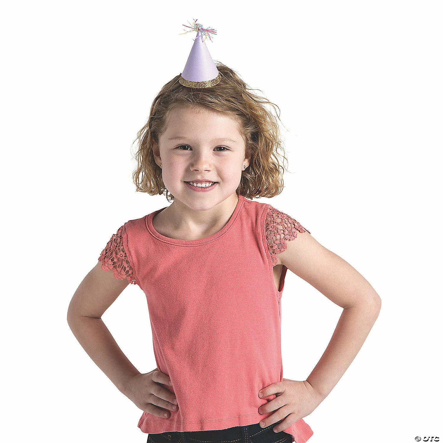 Whatโs better than party hats? Mini party hats, of course! The teeny-tiny party hats come in assorted colors and feature gold glitter edging and confetti toppers. Include them in your partyโs photo booth props or pass them out for guests to wear during the party. These little hats are so versatile, you can even use them for DIY projects or party crafts! Paper with elastic string. (8 pcs. per unit) 2 1/4″ x 3 1/2″