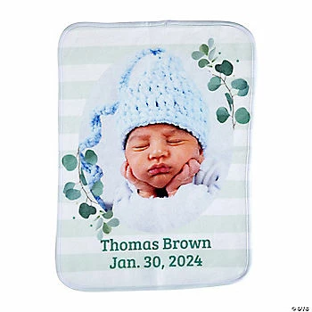 A special baby deserves a special burp cloth! This lovely burp cloth features personalized text along with an uploaded photo, making it a truly unique and thoughtful baby gift. The new mom and dad will appreciate receiving this keepsake burp cloth to keep as a memento to the newborn years. Polyester. 12′ x 16″ Personalize with 2 lines of text and 1 uploaded photo. ยฉ OTC