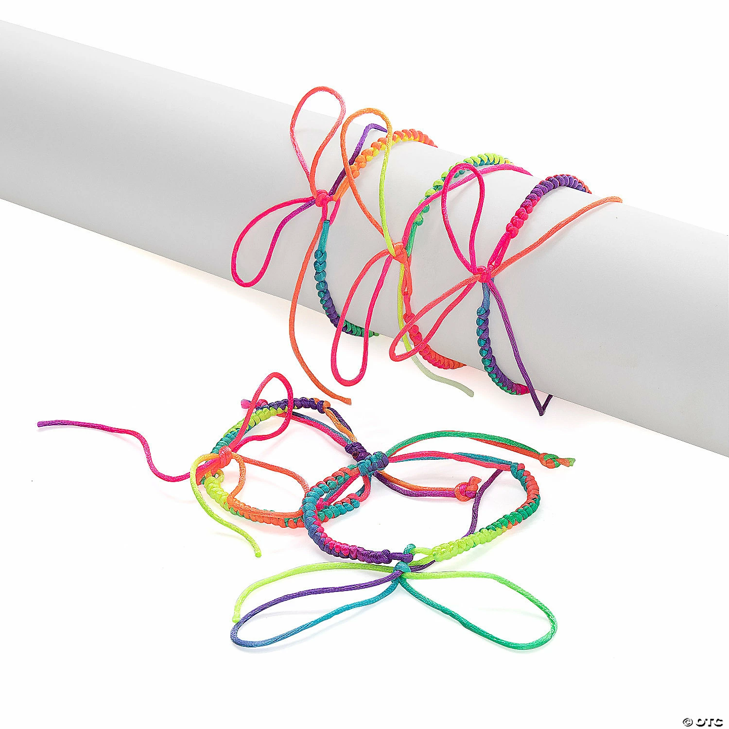 Brighten any outfit with these colorful bracelets! Kids will love handing this novelty jewelry out to their BFFs so they can wear matching bracelets. Also great as birthday party favors, classroom rewards and other fun giveaways. Polyester. Adjustable to 10″ circ.