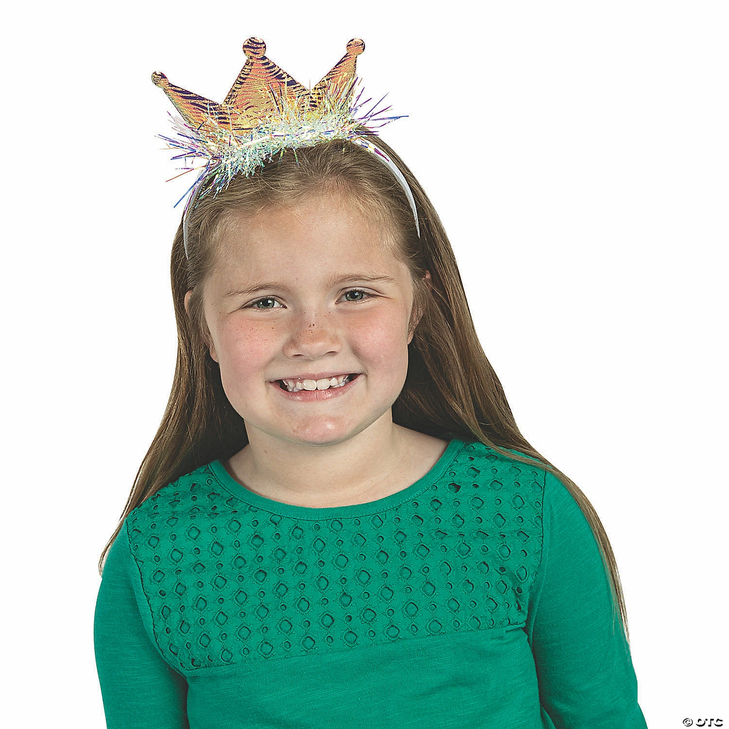 Get your shine on with these pretty tiara headbands! Fun costume accessories and princess party favors, these shiny, shimmery tiaras will transform any gathering into a regal celebration. Add these tiara headbands to your party supplies for a birthday party, bachelorette party or other girly gathering. Plastic. Headband, 5″ x 5 1/2″; tiara, 6″ x 3″.