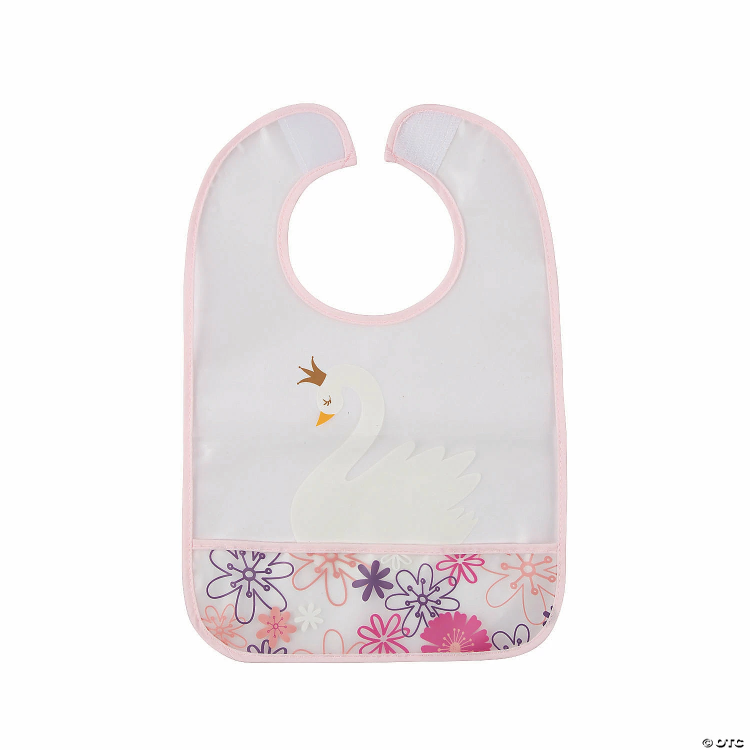 Make sure your sweet little swan doesn’t miss a crumb! Perfect for first birthdays, this bib comes in a fabulous feminine design of light pink. It’s sure to catch everything your little guest of honor drops and the touch fasteners make it easy to put on and take off. Even better, it can easily be wiped clean and reused again and again! Vinyl. 9 1/4″ x 13 1/2″ with touch fasteners. ยฉย OTC